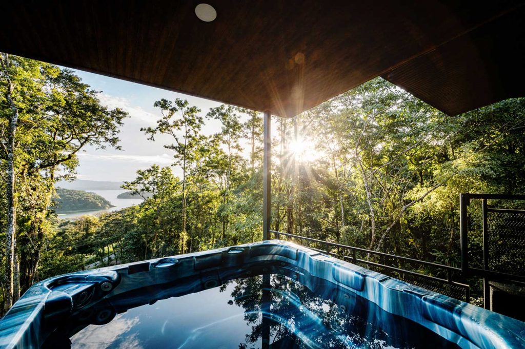 Take in the stunning views of Lake Arenal, surrounded by towering trees and the sounds of the rainforest. The large terrace runs the full width of the house. The roof terrace, which has a walkway, offers the best views of picturesque sunsets and of the many bird species in the area.